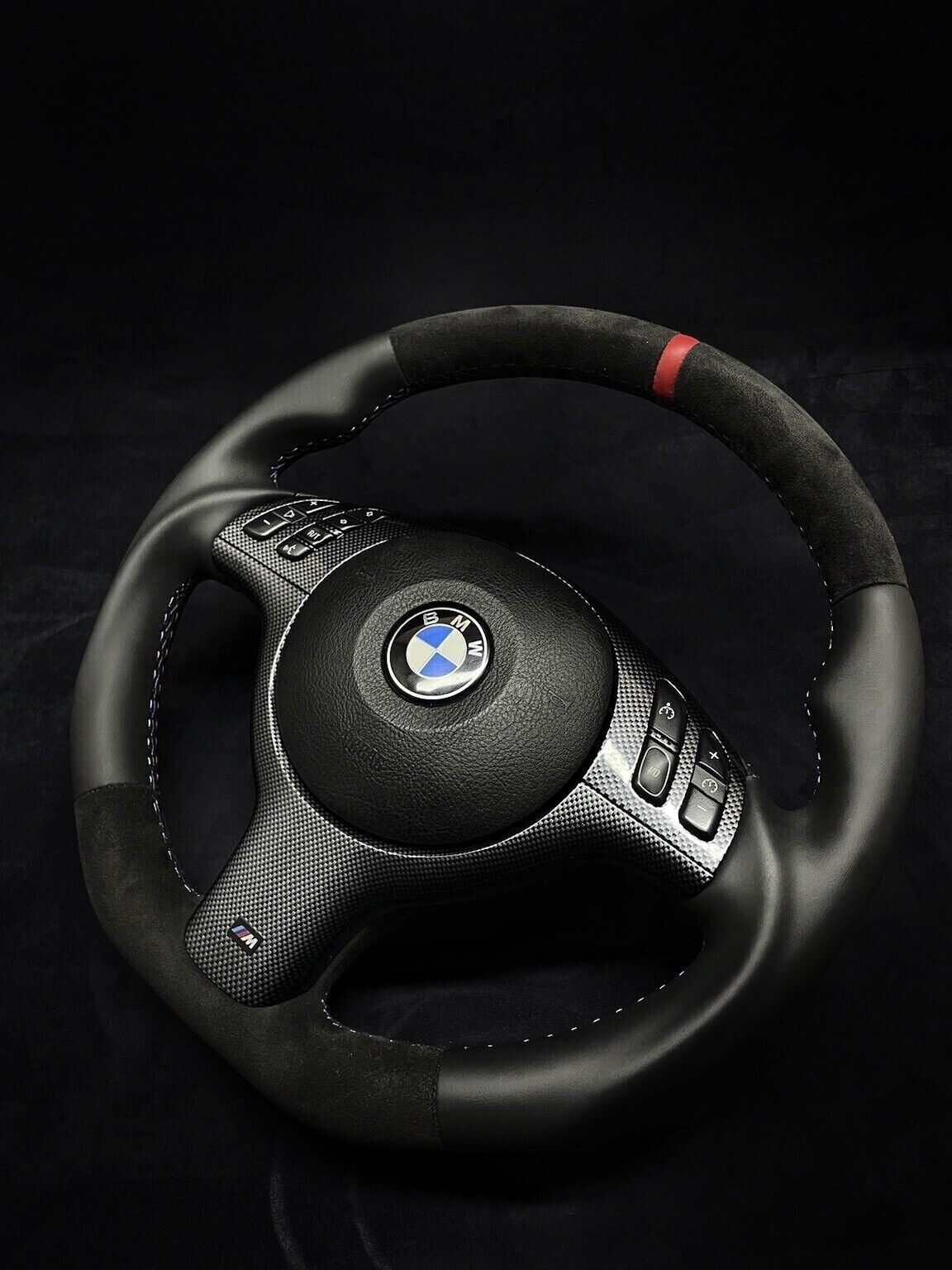 BMW E46-E39 ALCANTARA-NAPPA / RED STRIPE / M STITCHING / CARBON FIBRE TRIM / SHAPED