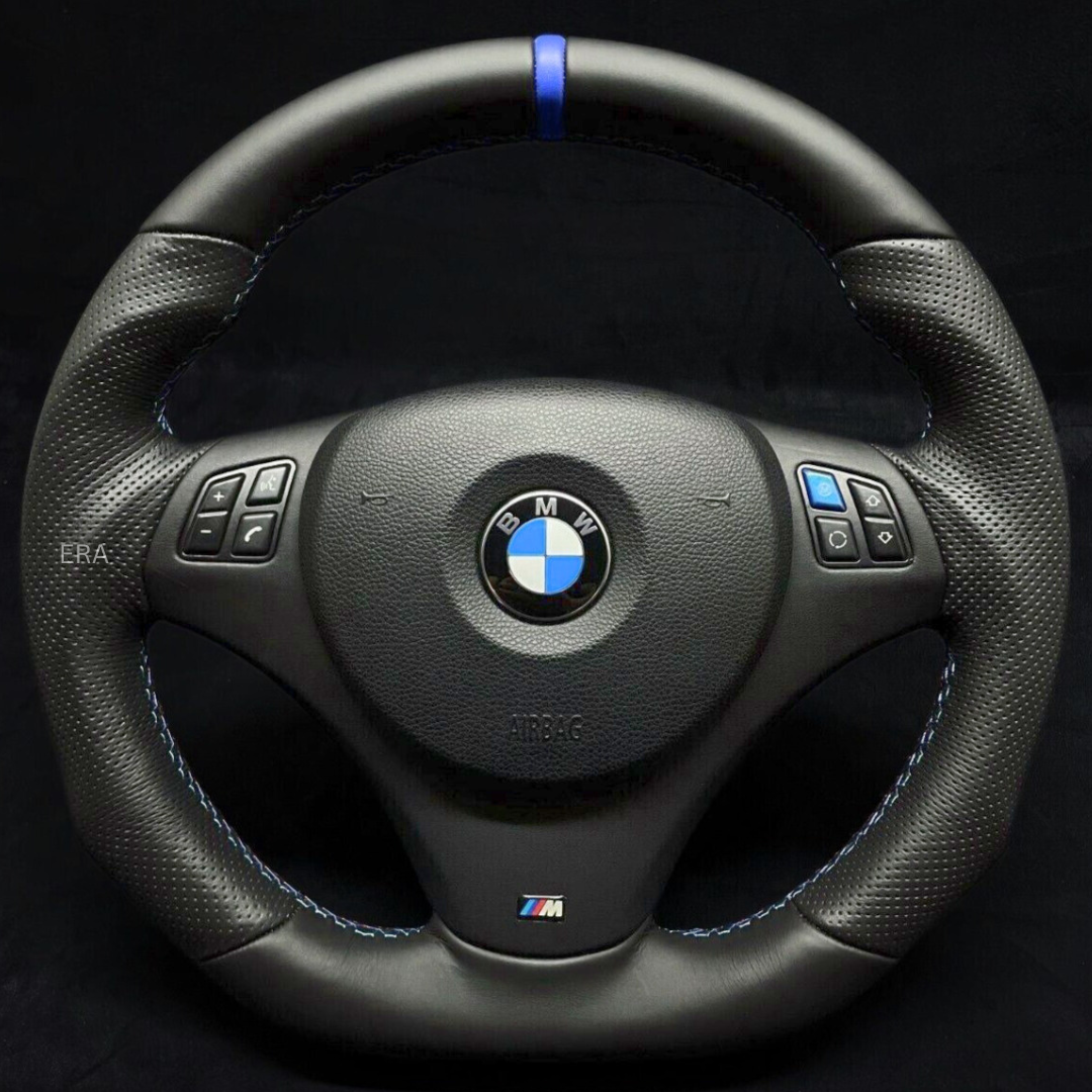 BMW E9X-E8X NAPPA-PERFORATED LEATHER / BLUE STRIPE / M STITCHING / LEATHER TRIM / BLUE BUTTON / SHAPED