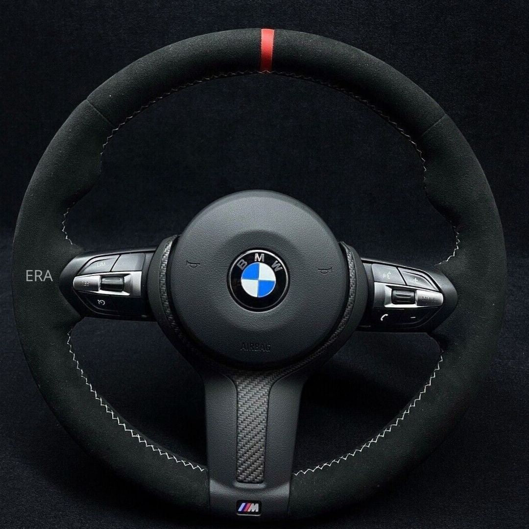 BMW F-SERIES ALCANTARA / RED STRIPE / WHITE STITCHING / MATTE CARBON TRIM