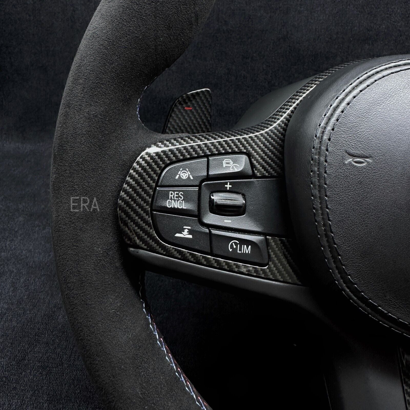 bmw steering wheel carbon fiber trim LIGHT BLUE STRIPE g series CARBON SHIFT PADDLES alcantara m stitching